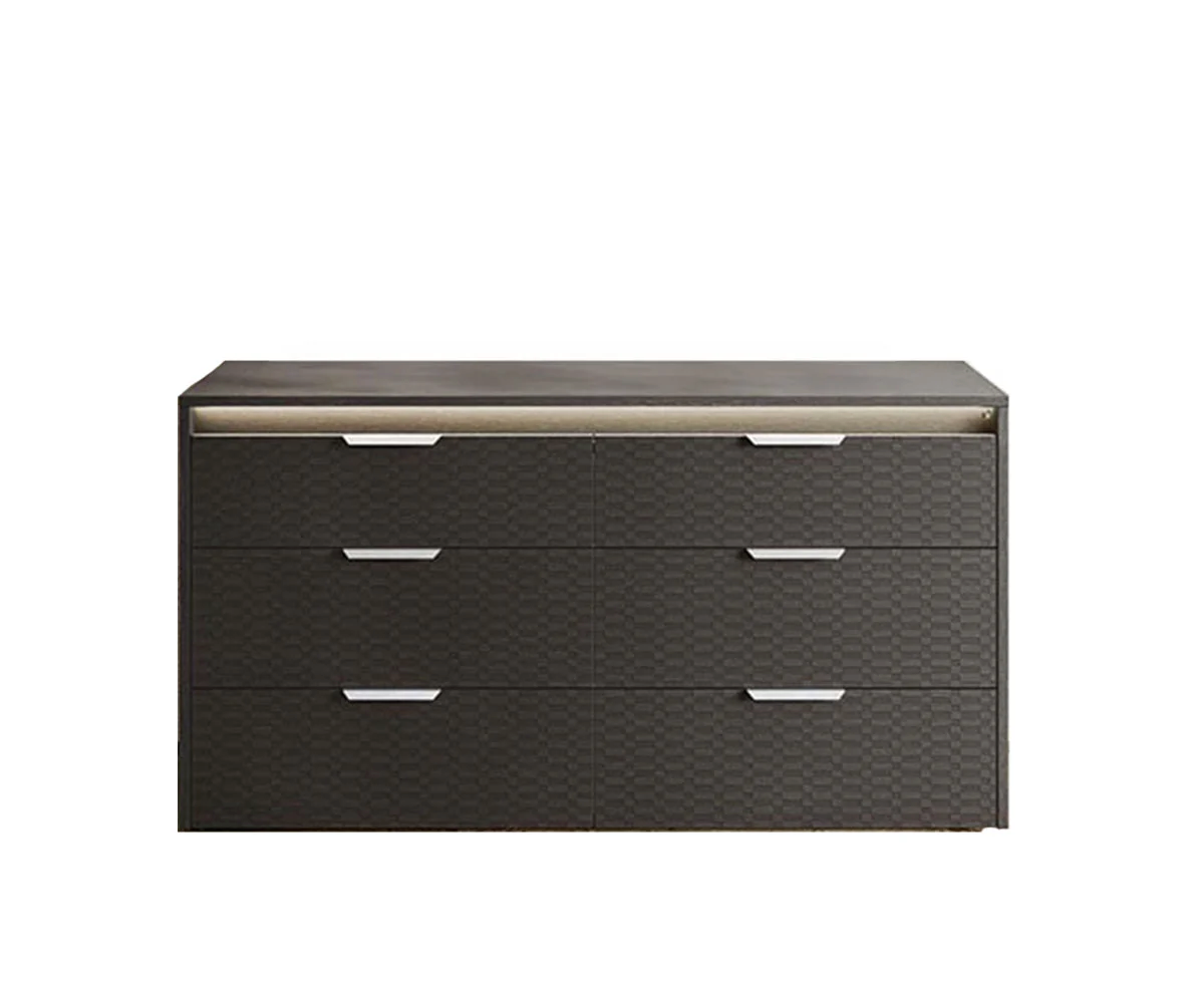 Each of the six spacious drawers glides effortlessly, offering ample room for clothing, accessories, and daily essentials. A discreet top LED light (optional item) softly illuminates the upper edge, adding both beauty and practicality to its design. Sleek brushed metal handles accentuate the dark oak finish, reinforcing the collection’s contemporary aesthetic.