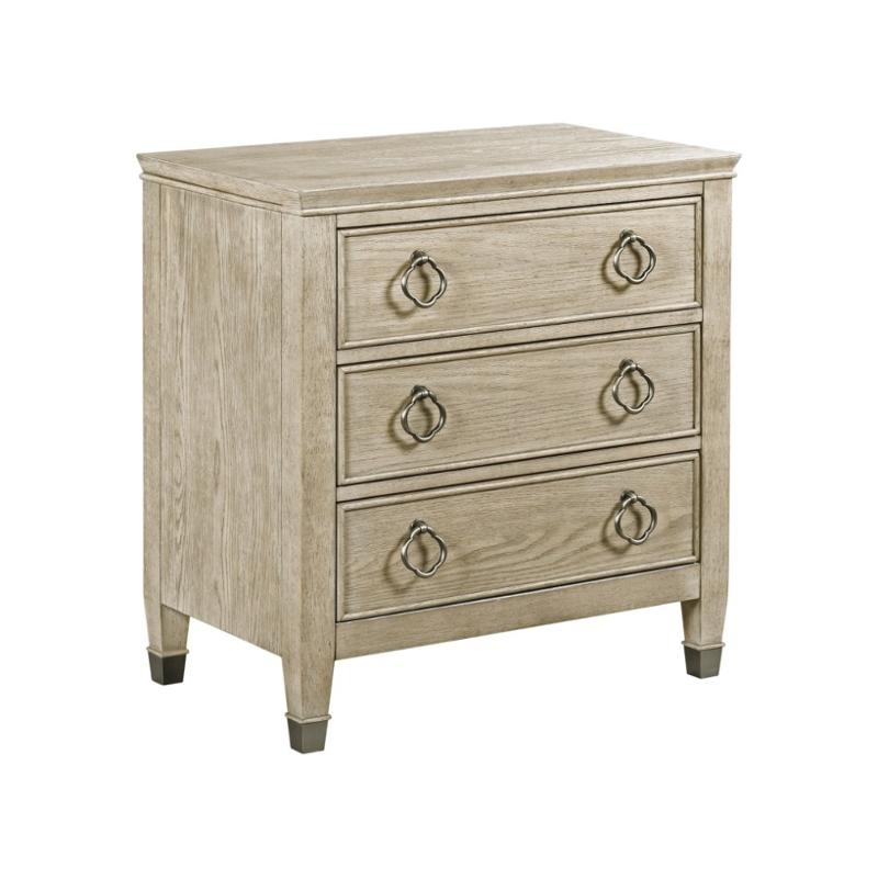 Three drawer nightstand for storage will complete any bed. Cedar-lined bottom drawer with an outlet plug and USB port added for convenience to charge your electronics and adds to the appeal.