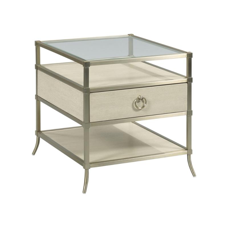 The Capri End table features one drawer, one fixed shelf, and an open compartment area.
