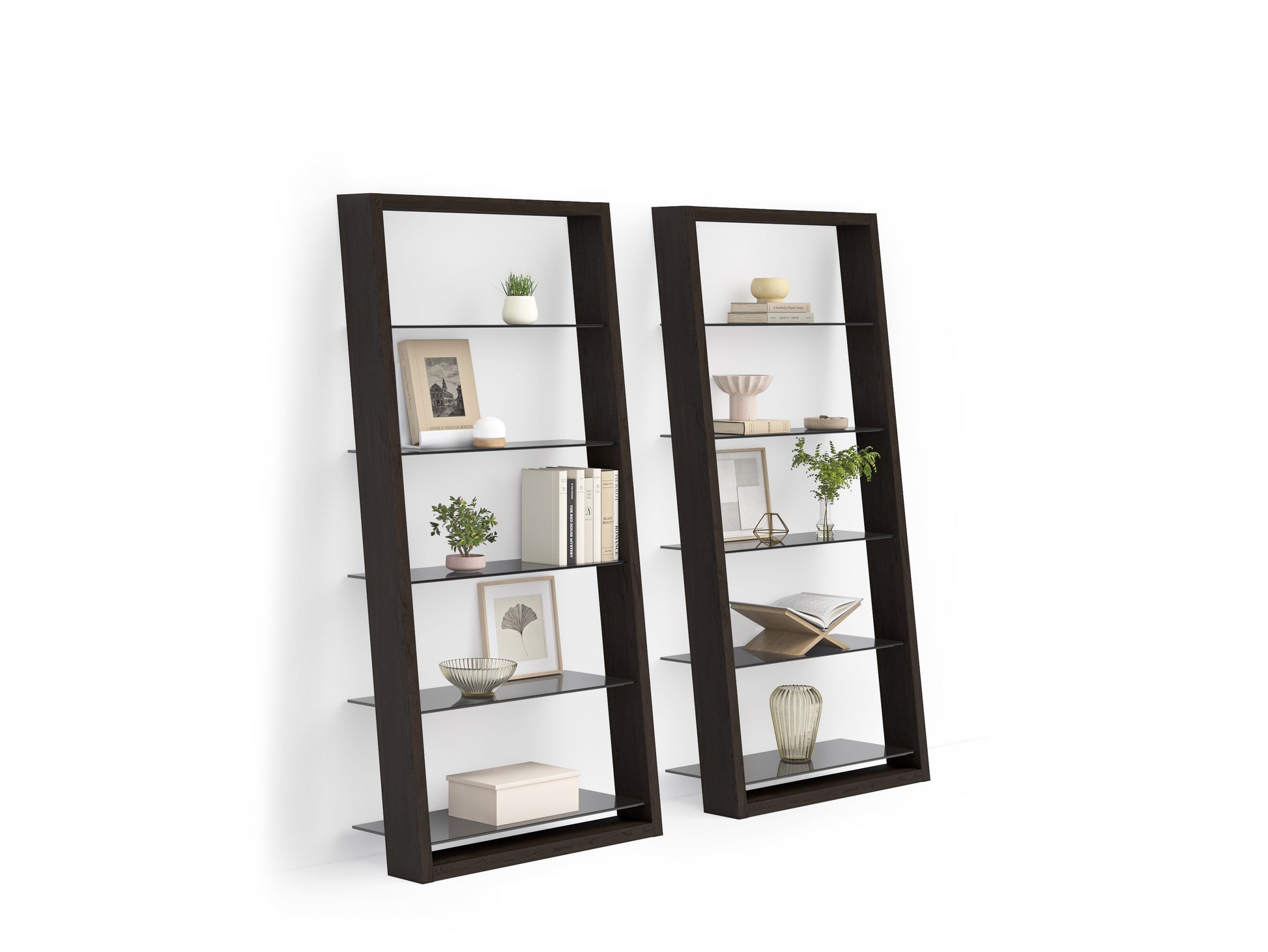 Eileen, whether alone or in multiples, adds storage and display space to any room. The shelves' tempered glass construction provides strong storage for a variety of goods, including books and collectibles. These elegant shelves are ideal for exhibition, storage, or simply bringing a room together. They complement a variety of pieces from the BDI media and office collection. Eileen, available in four wood finishes and grey-tinted tempered glass shelves, is a tastefully subtle addition to any home or office.