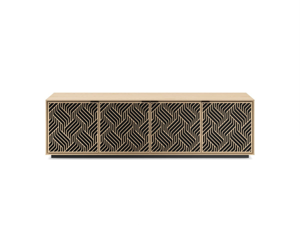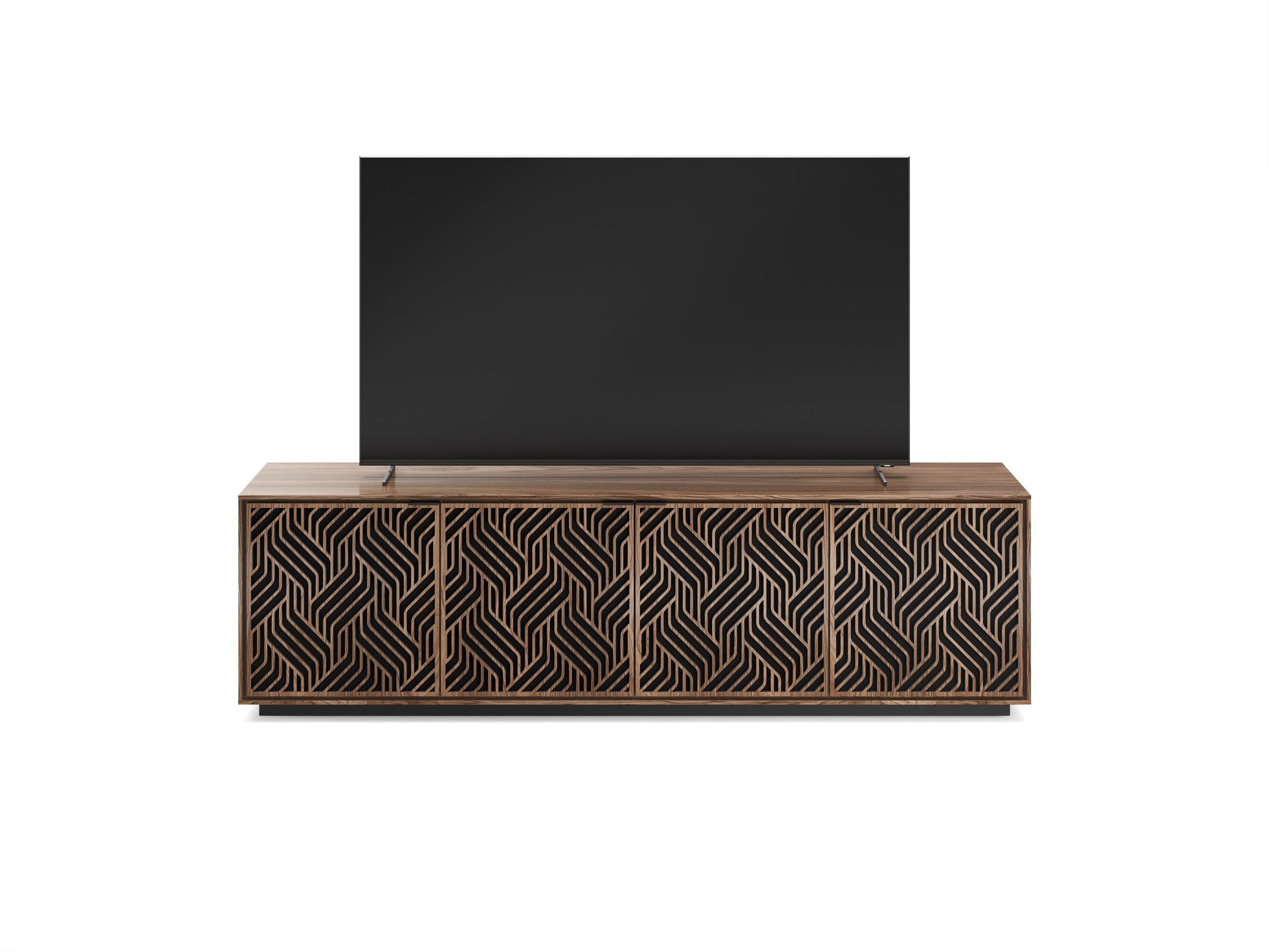 The Elements 8703-WE TV Stand and Storage Console features an intricately woven Weave door pattern and perfectly blends modern design and innovative functionality for your home entertainment and storage needs. Featuring precision-cut doors that provide acoustic transparency and natural airflow, this cabinet is designed to keep AV components, gaming consoles, and electronics cool and accessible. Its spacious interior includes adjustable tempered glass shelves for customized storage, while the hidden cable management system keeps cords neatly organized. Set on a sleek rolling plinth base, this cabinet supports TVs up to 85‚ and elevates your living space with its refined, eye-catching style.
