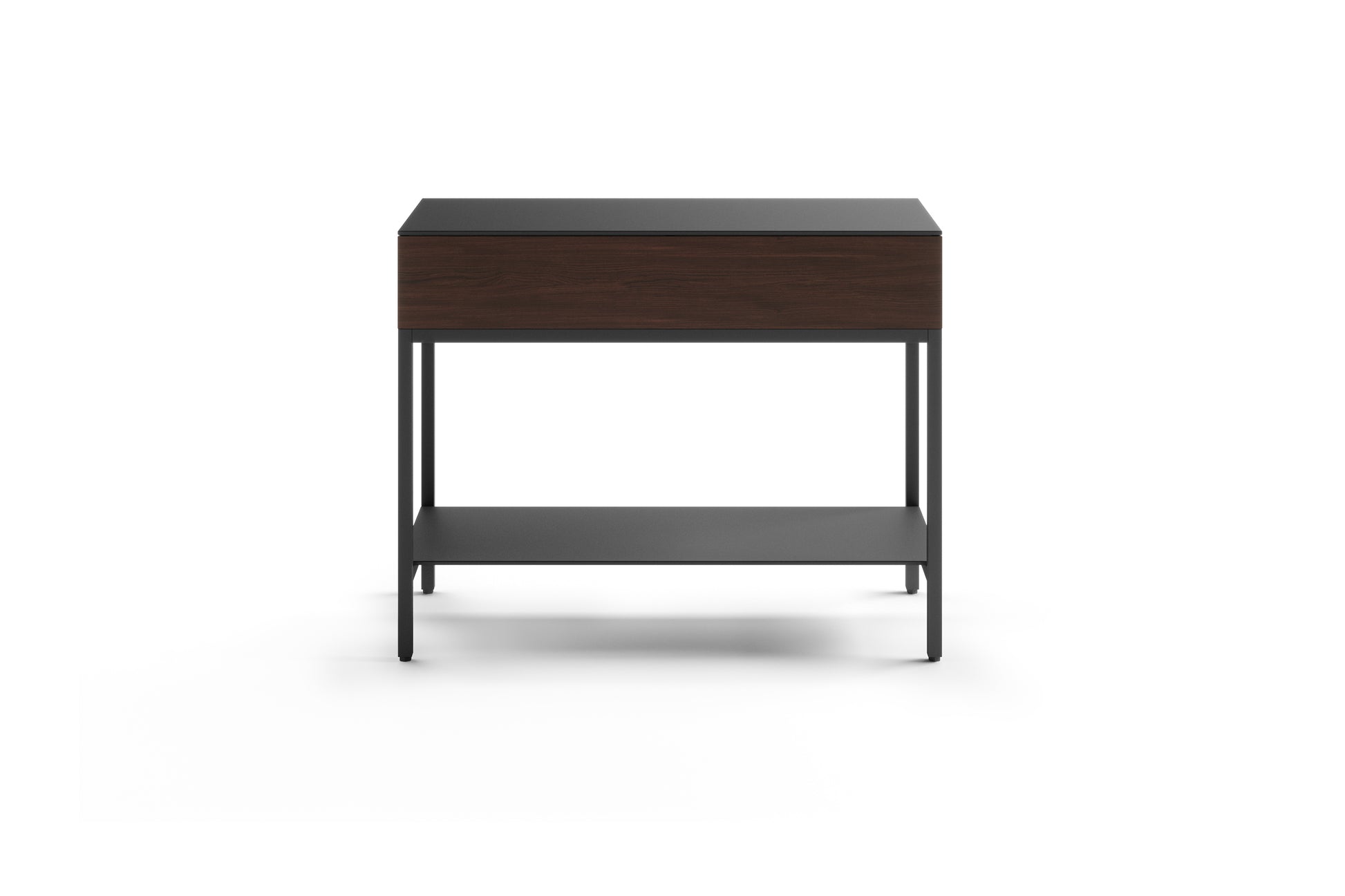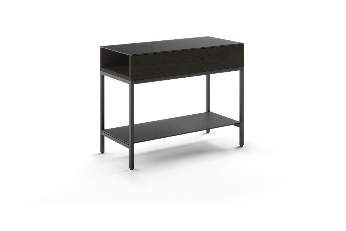 The slender yet highly versatile Reveal 1196 end table coordinates perfectly with various seating and living room configurations. Available in three finishes, the table's tempered glass top and lower shelf are ideal for sofa-side display, while a unique divided compartment provides storage and concealed cable management. Partner with the Reveal 1192 lift-top coffee table to create a beautifully functional table grouping for work and relaxation.
