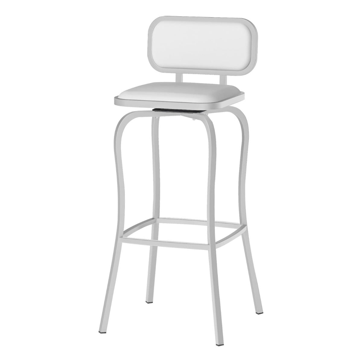 Modern style swivel stool. Available in Counter Height or Bar Height. It has a brushed stainless steel finish.
