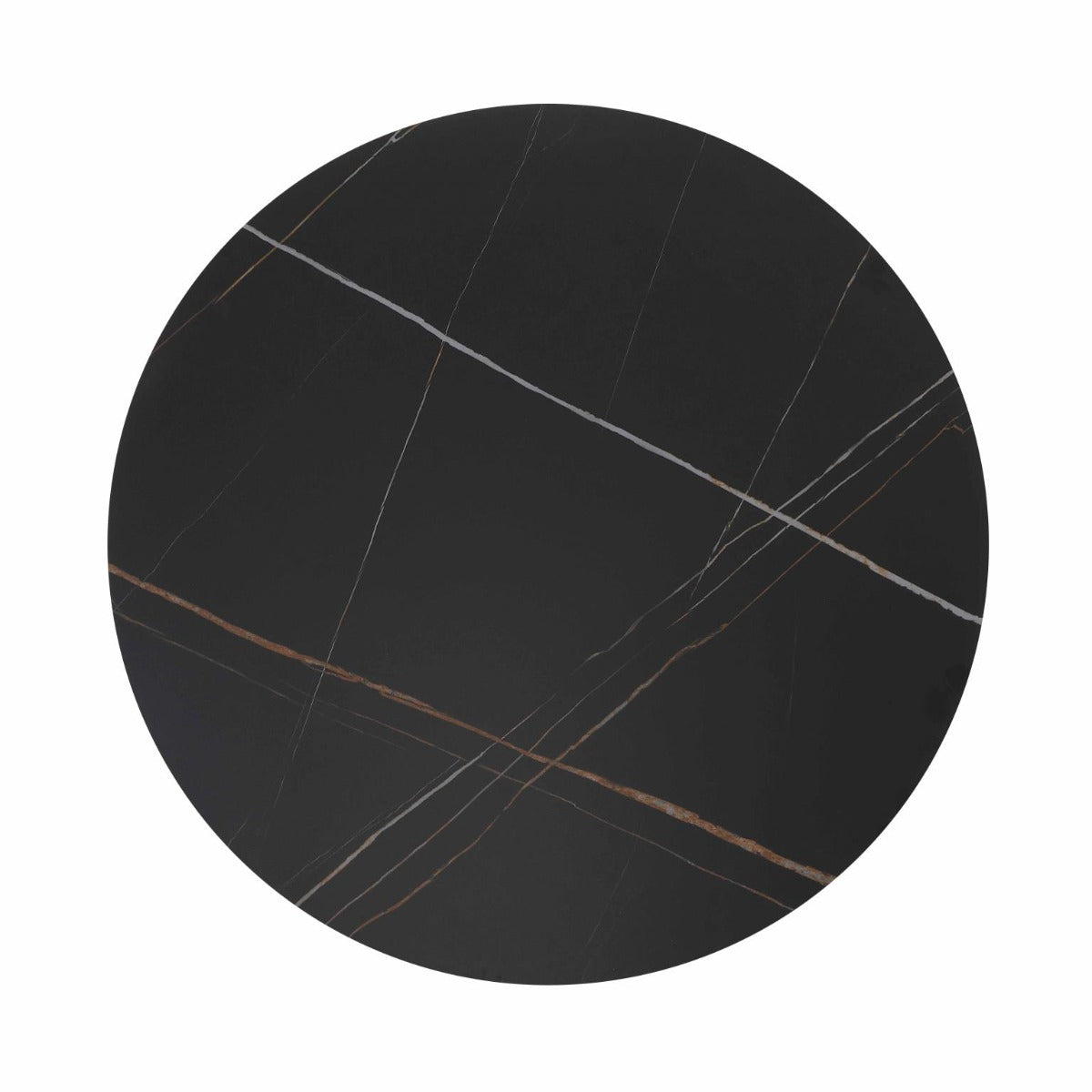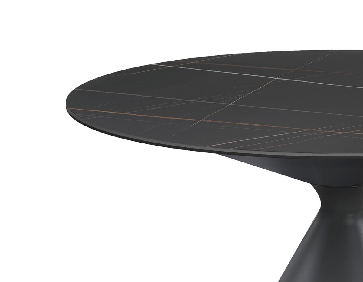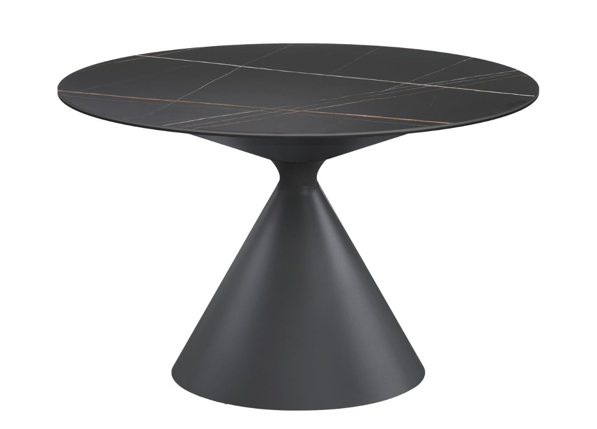 Introducing the Chintaly Daphne 5-Piece Dining Room Set, a sophisticated addition to any dining space that harmonizes elegance with modern functionality. This exquisite set features a round ceramic tabletop, skillfully bonded with tempered glass for enhanced durability and aesthetic appeal. The seamless design ensures a smooth surface, perfect for both casual meals and formal gatherings. The striking cone-shaped steel pedestal base not only provides robust support but also adds a contemporary flair to the overall design. Accompanying the table are four elegantly crafted Daphne white chairs, designed with comfort in mind while maintaining a sleek profile that complements the table beautifully.