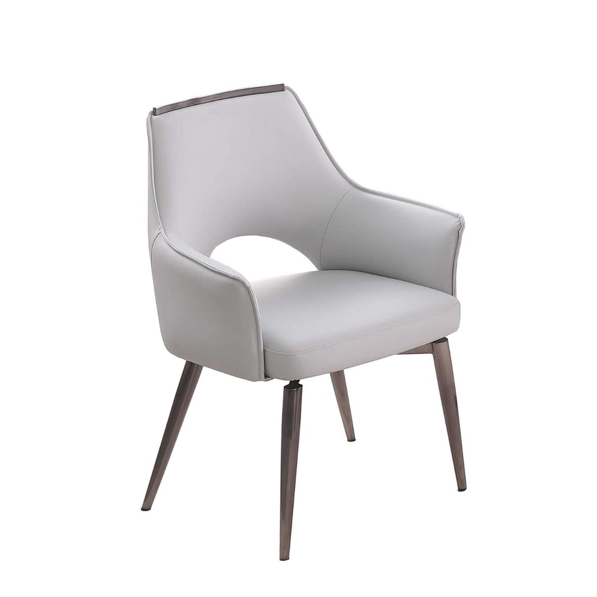 Meet your new favorite spot to kick back and relax: the Chintaly Devan Modern Armchair with Memory Swivel! Upholstered in sleek gray faux leather, this chair isn’t just a stylish addition to your space; it’s designed for comfort. The memory swivel feature lets you effortlessly spin around without missing a beat, whether you're chatting with friends or grabbing something from across the room. Plus, those sturdy steel legs mean you can lounge worry-free.