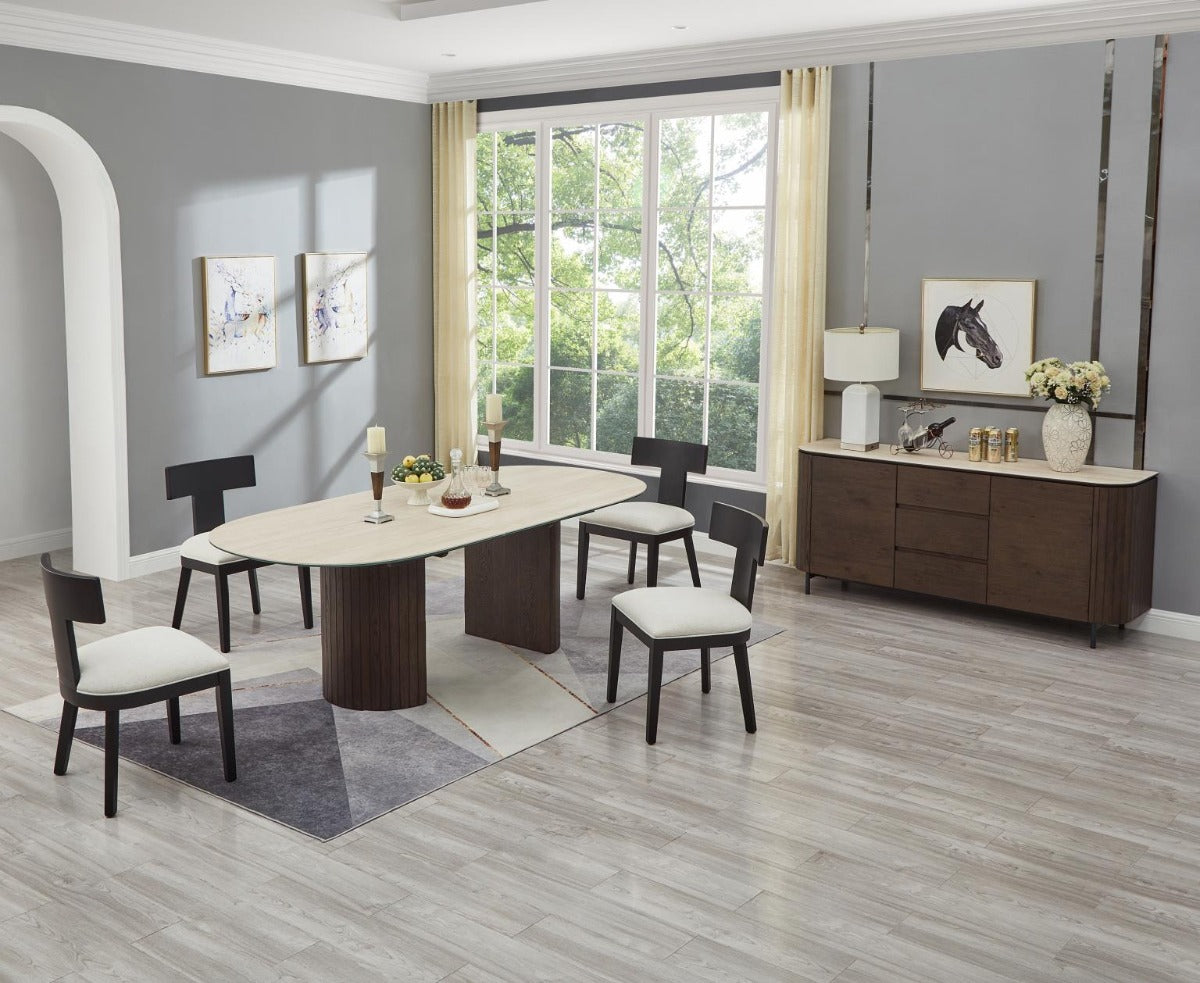 Introducing the Chintaly Edith Modern Side Chair, a perfect blend of sophistication and comfort. This elegantly designed chair features a T-shaped backrest that not only provides excellent support but also adds a contemporary flair to any dining or living space.