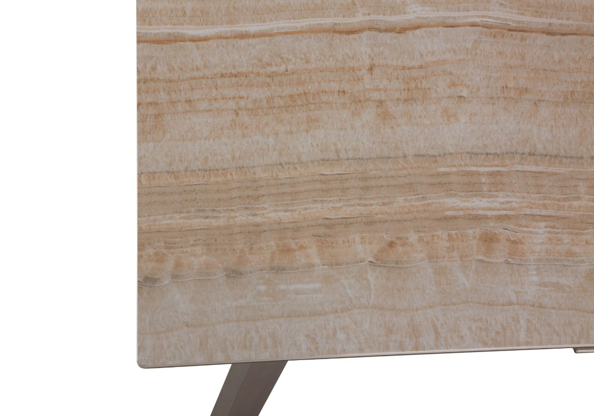 Chintaly Eleanor Glass & Ceramic Table with Pop Up Extension and Four-legged Steel Base