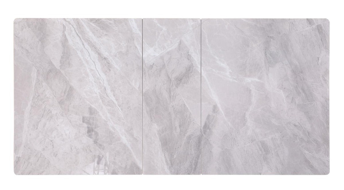 Transform your dining space with the Chintaly Judith Modern Dining Table. This stunning table features an extendable sintered stone top, allowing you to easily accommodate more guests for those special gatherings. The marbleized gloss gray finish on the top adds a touch of luxury and sophistication, while the sturdy steel base in a matte black finish provides a sleek, modern contrast. Perfect for both everyday meals and elegant dinner parties, the Judith Dining Table combines style, functionality, and durability to enhance your contemporary home decor.