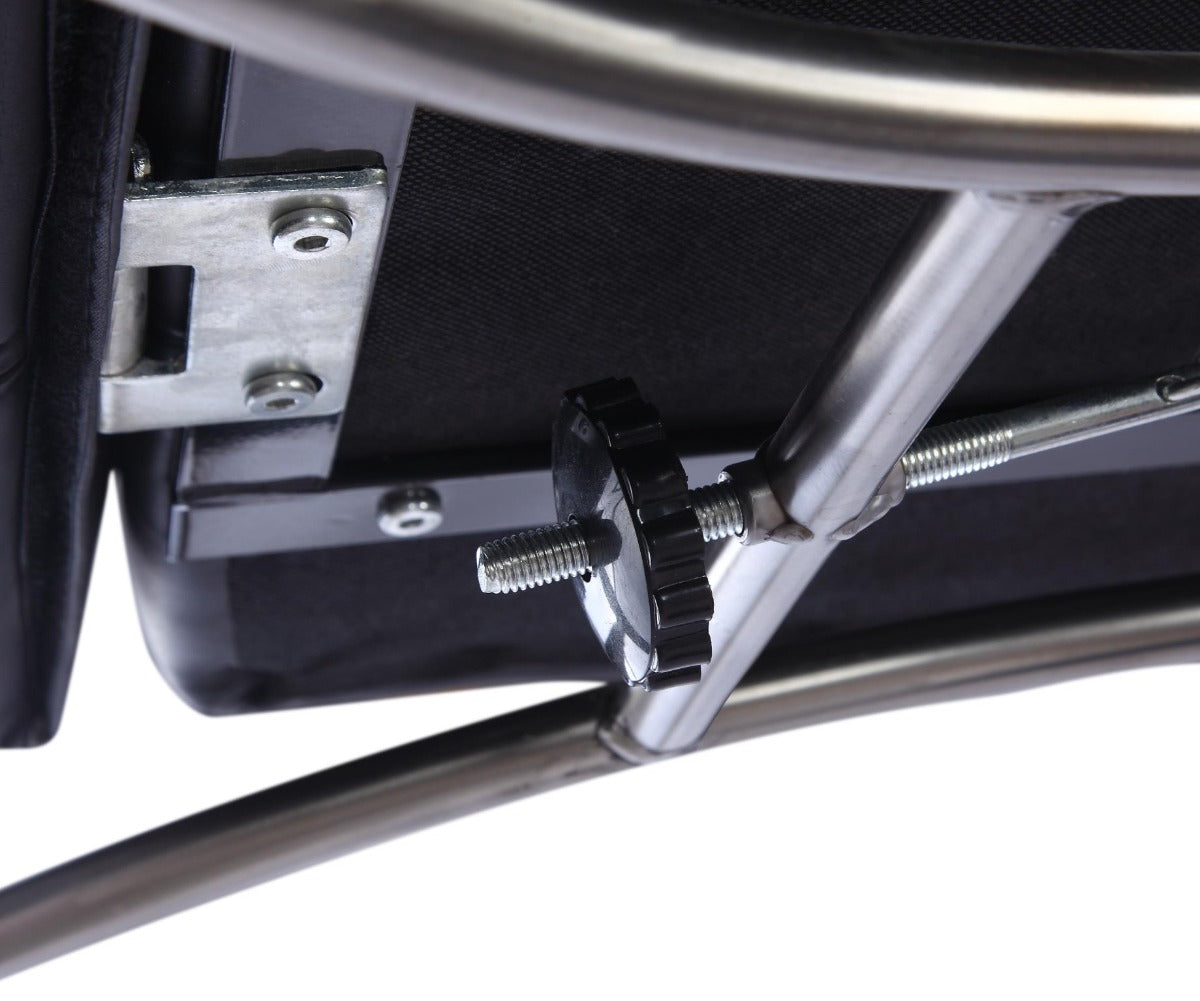 Chintaly Molly Motion Back Side Chair, Blue Faux Leather with Brushed Steel Legs