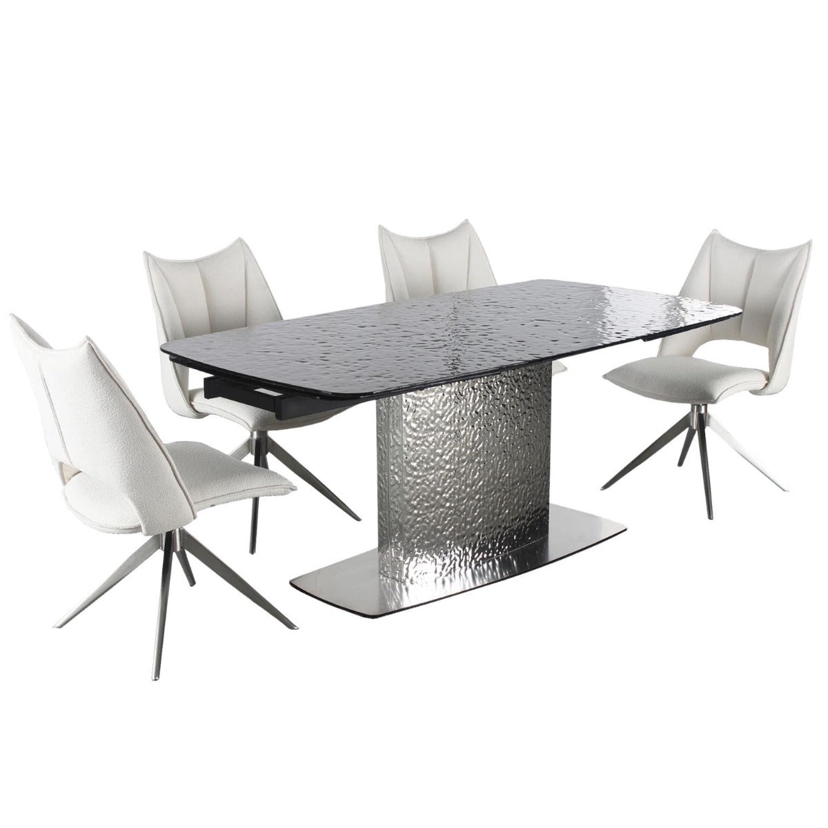 Contemporary Dining Set with Extendable Textured table & 4 Swivel Chairs