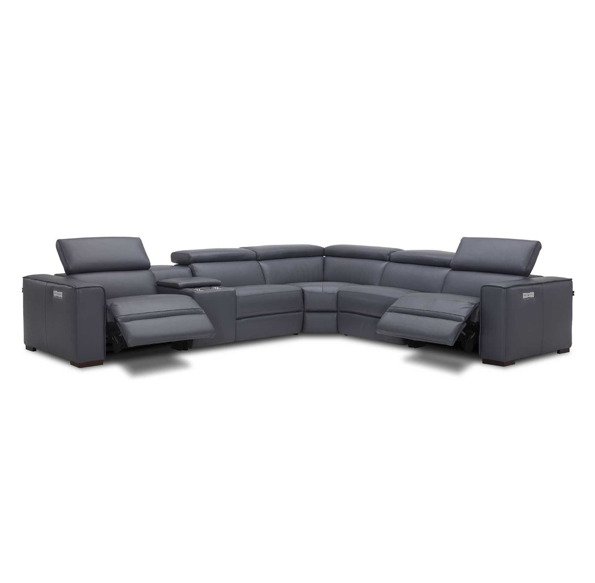 J & M Picasso 6 Pc Motion Sectional, Blue Gray Leather