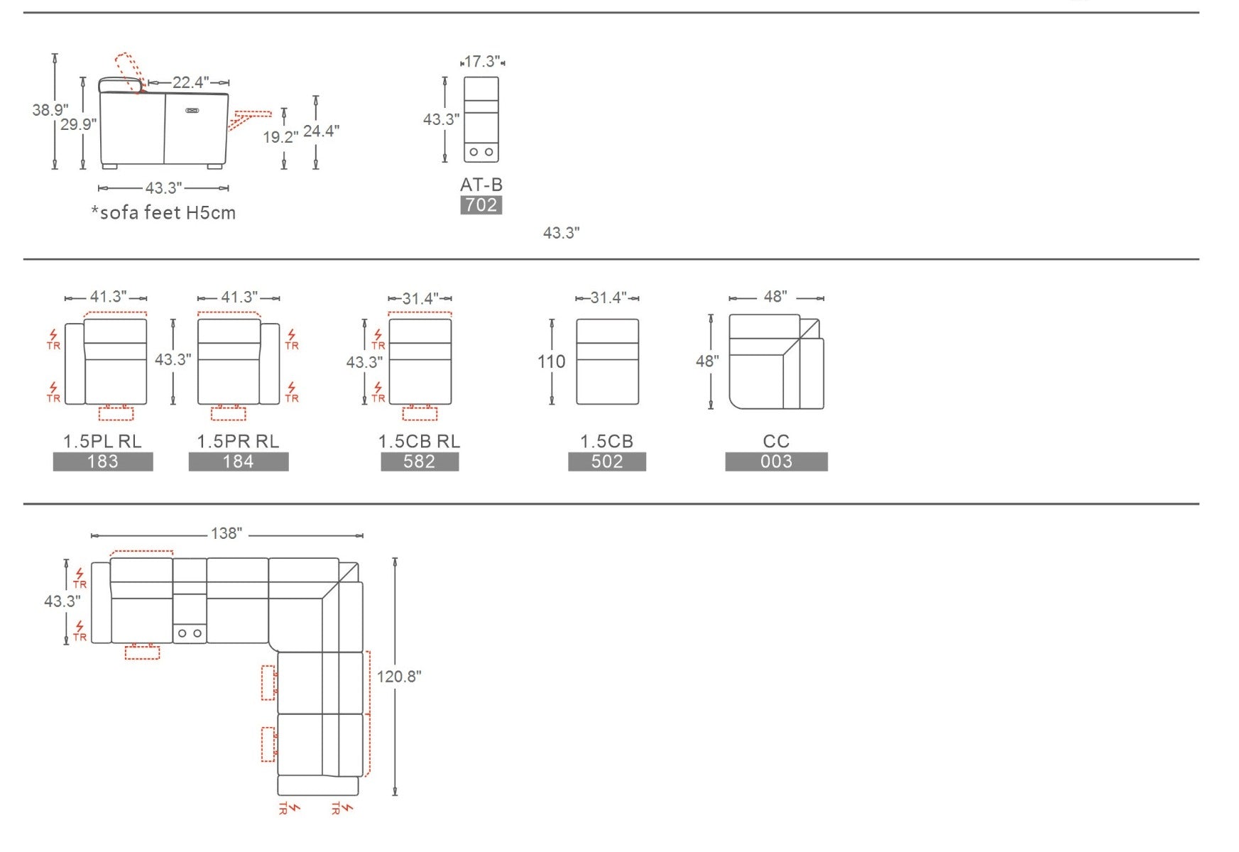 Visually Clean Lines and spacious seats set the Picasso apart from the standard. This iconic sectional features 3 powered recliners and headrests for maximum comfort. Crafted from Premium Top-grain Leather all around, this 6 piece sectional features a convenient console with two cup holders plus storage, 2 corner-end recliners, 1 armless recliner, 1 stationary armless plush corner cushion for ultra comfort, and a solid oak frame to ensure long-lasting use.