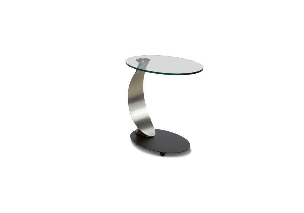 Get your work done in style with the Scoop Laptop Cart! This modern mobile laptop table is perfect for studying, working from home, or as an additional workspace. Its champagne-plated steel curve supports the 1/2" thick clear oval glass top making it a beautiful piece of furniture. Plus, its unobtrusive twin-wheel casters allow you to move it around with ease. Get the Scoop Laptop Cart today and start creating your own productive space!