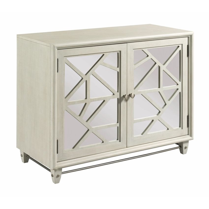 The Hidden Treasures Accent Cabinet has two doors with clear mirror accents. There is one adjustable shelf, and one drawer behind the doors, which allows for ample storage space. This piece is stylish for any living space, whether it be the living room, bedroom or entryway.