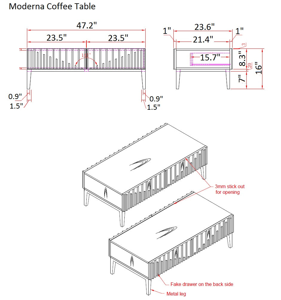 Coffee Table: 47.2"L x 23.6"W x 16"H