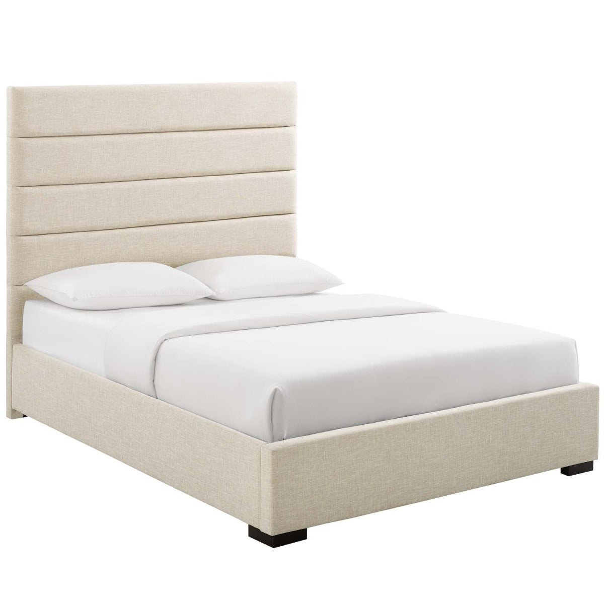An elegant update to your bedroom decor, Genevieve imbues any guest bedroom or master suite with an elevated and tranquil style. Defined by a clean-lined, horizontal channel tufted headboard, this modern queen platform bed features soft fabric upholstery with padded headboard panels that transform your bedroom into the luxurious haven for a peaceful night of sleep. Genevieve comes with a wood slat support system that eliminates the need for a box spring and accommodates memory foam, spring, latex, and hybrid mattresses. Bed Weight Capacity: 800 lbs