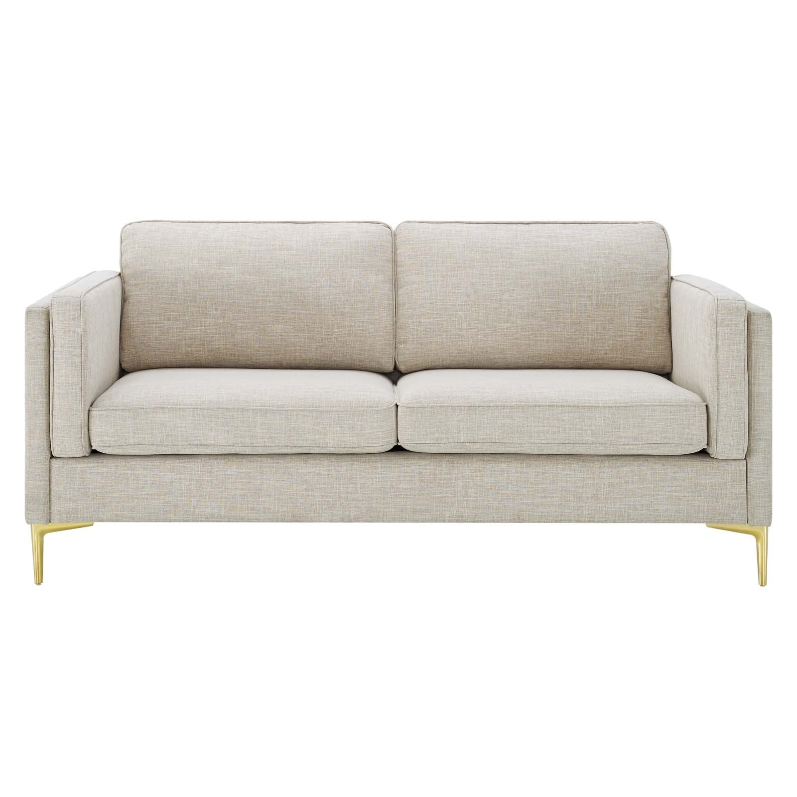 Gently sloping curves and large dual cushions create a favorite lounging spot. Whether plopping down after a long day at work, settling in with coffee and brunch, or entering a spirited discussion with friends, the Engage sofa is a welcome presence in your home. Seven tufted buttons create eye-catching appeal, adding depth that brings your sitting décor to center stage. Four cherry color rubberwood legs and frame supply a solid base to the comfortable upholstered material.