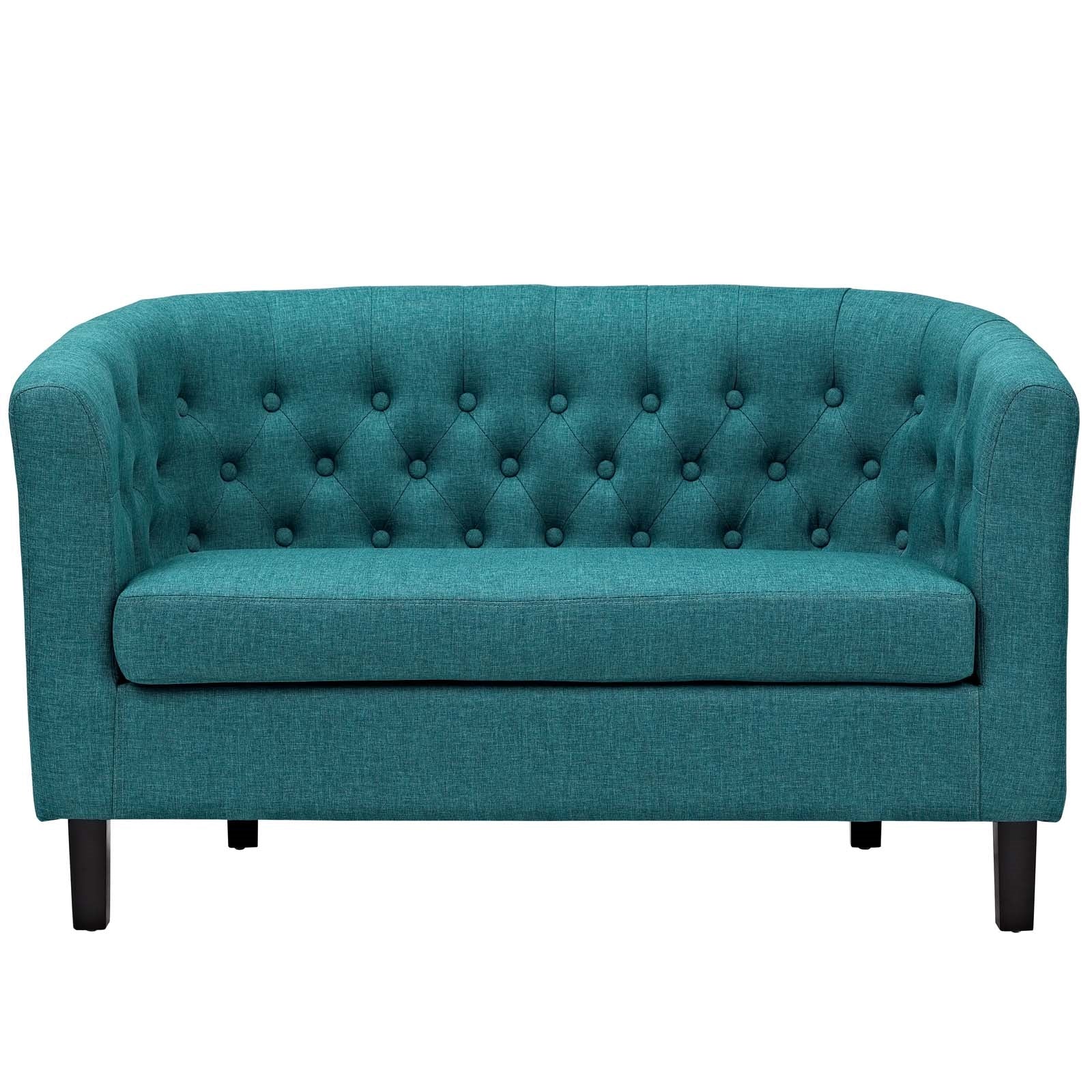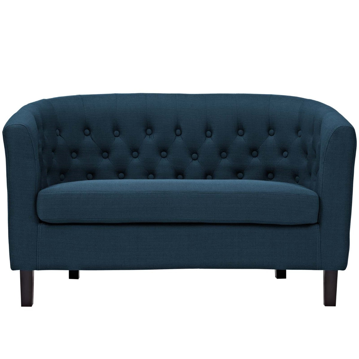 Intrinsically luxurious, Prospect is a throwback to the classic Chesterfield design, while delivering an engaging modern look filled with passion and drive. Button tufting and sweeping curves blend to form a contemporary lounge piece that all will be drawn to. This cozy loveseat with espresso stained wood legs and non-marking foot caps features comfortable foam padding and polyester fabric lining.