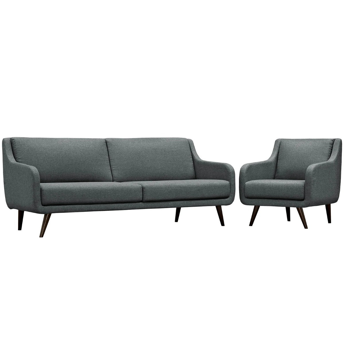 Gently sloping curves and large dual cushions create a favorite lounging spot. Whether plopping down after a long day at work, settling in with coffee and brunch, or entering a spirited discussion with friends, the Engage sofa is a welcome presence in your home. Seven tufted buttons create eye-catching appeal, adding depth that brings your sitting décor to center stage. Four cherry color rubberwood legs and frame supply a solid base to the comfortable upholstered material.