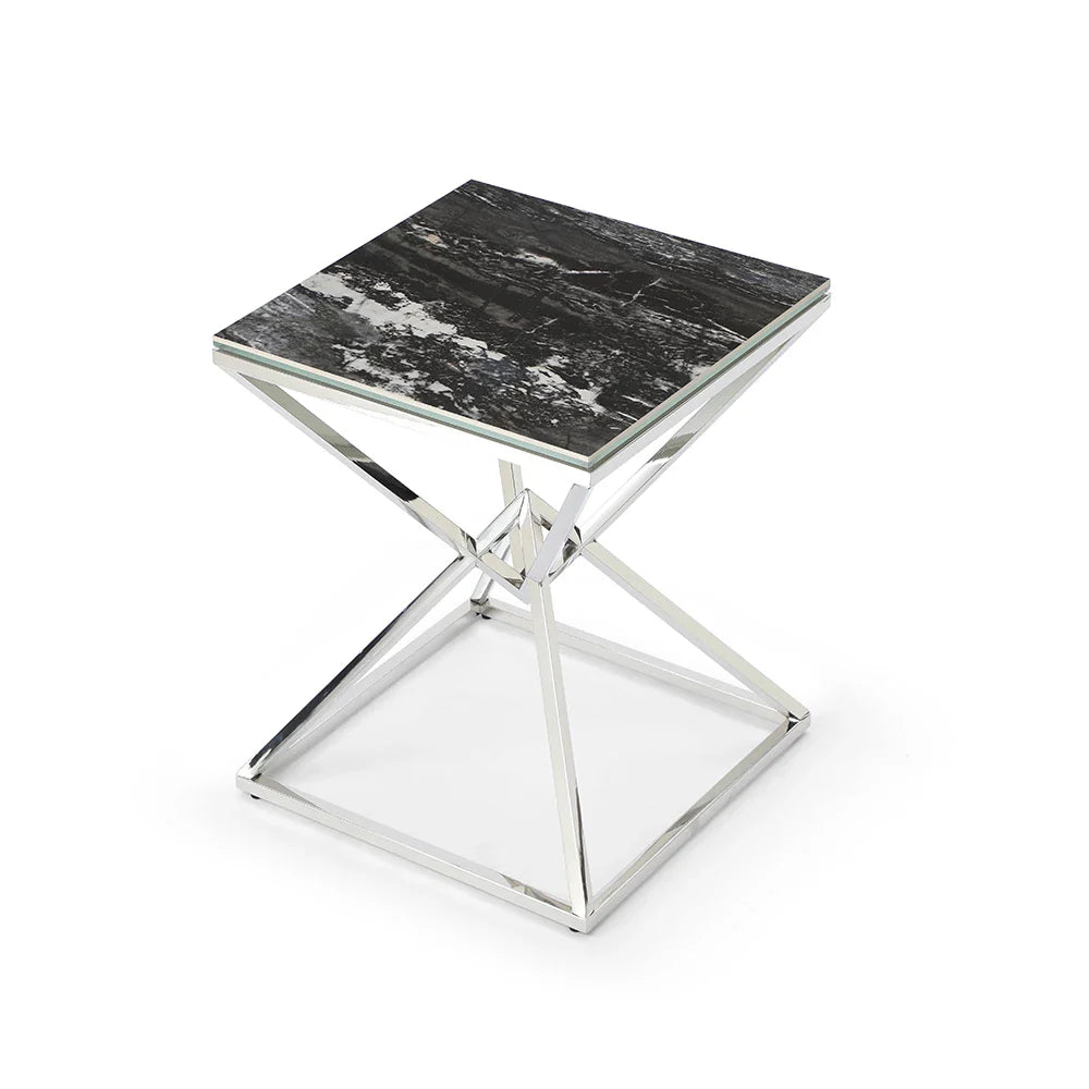 The creative expression of perfect symmetry, the Pyramid end table. This end table can serve a lot of purposes such as an end table, corner piece, pedestal to show your trophies, or simply fill the gap. The pyramid end table is made of a tempered glass top and stainless steel frame.
