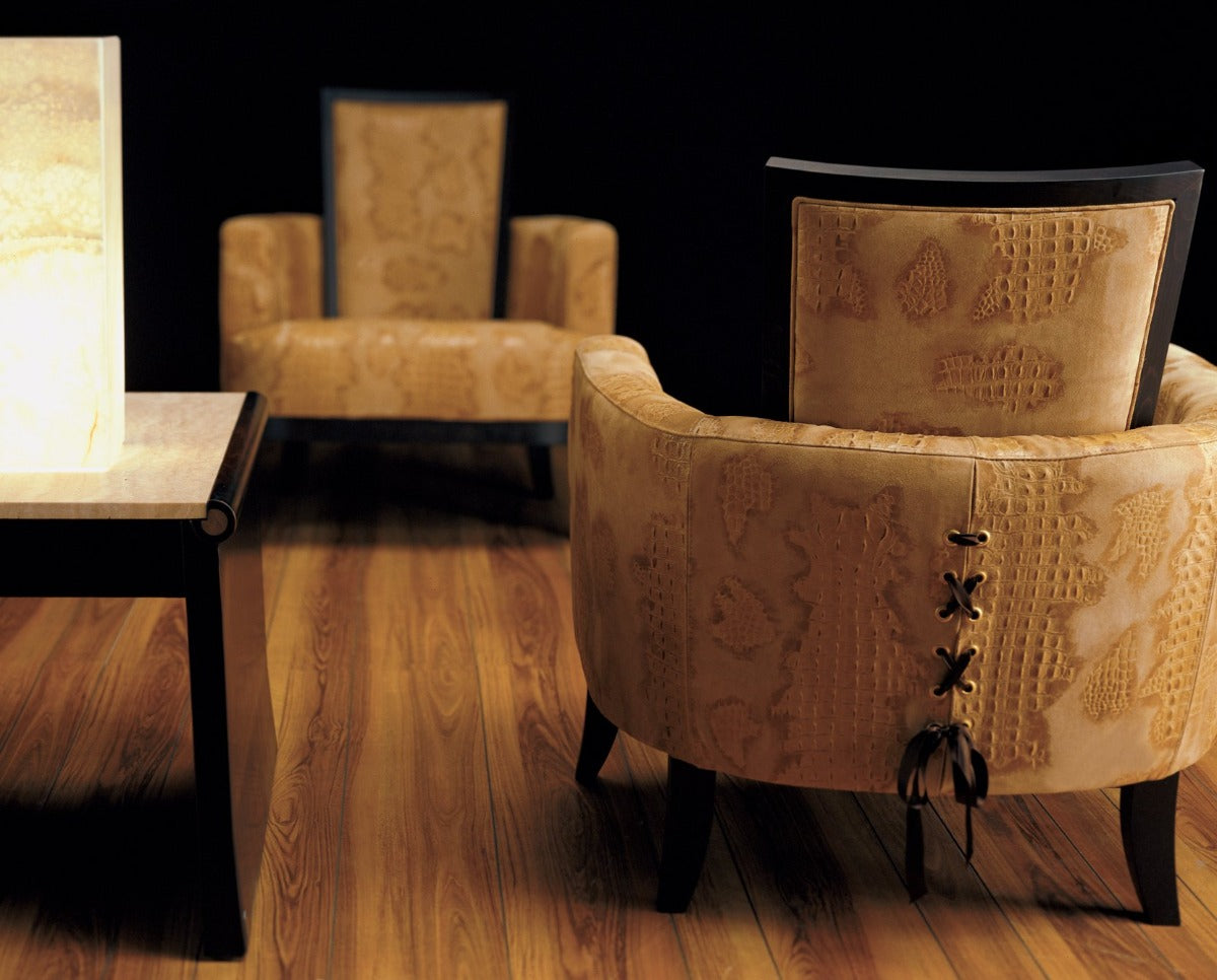 Add a touch of sophistication to your living space with our Elegant Patterned Armchair, featuring a unique lace-up back detail. This exquisite piece of furniture combines luxurious comfort with intricate design, making it a standout addition to any room.