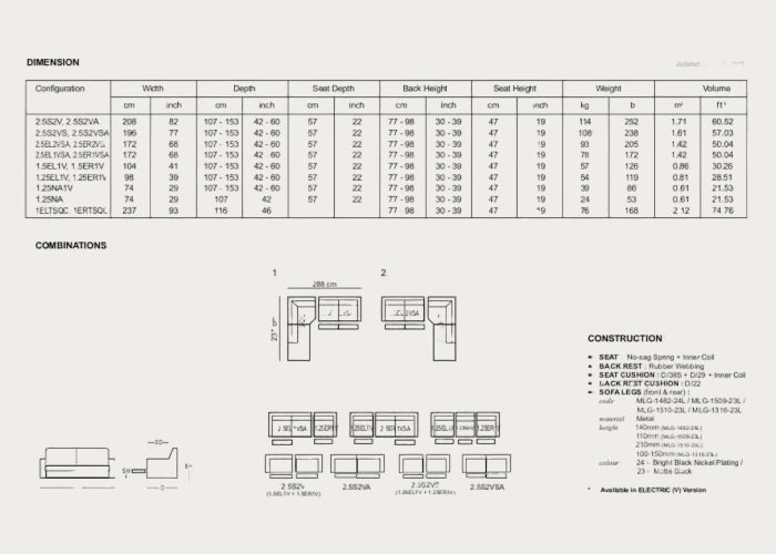 - Overall: W 113.40" x D 93.30" x H 30-39"