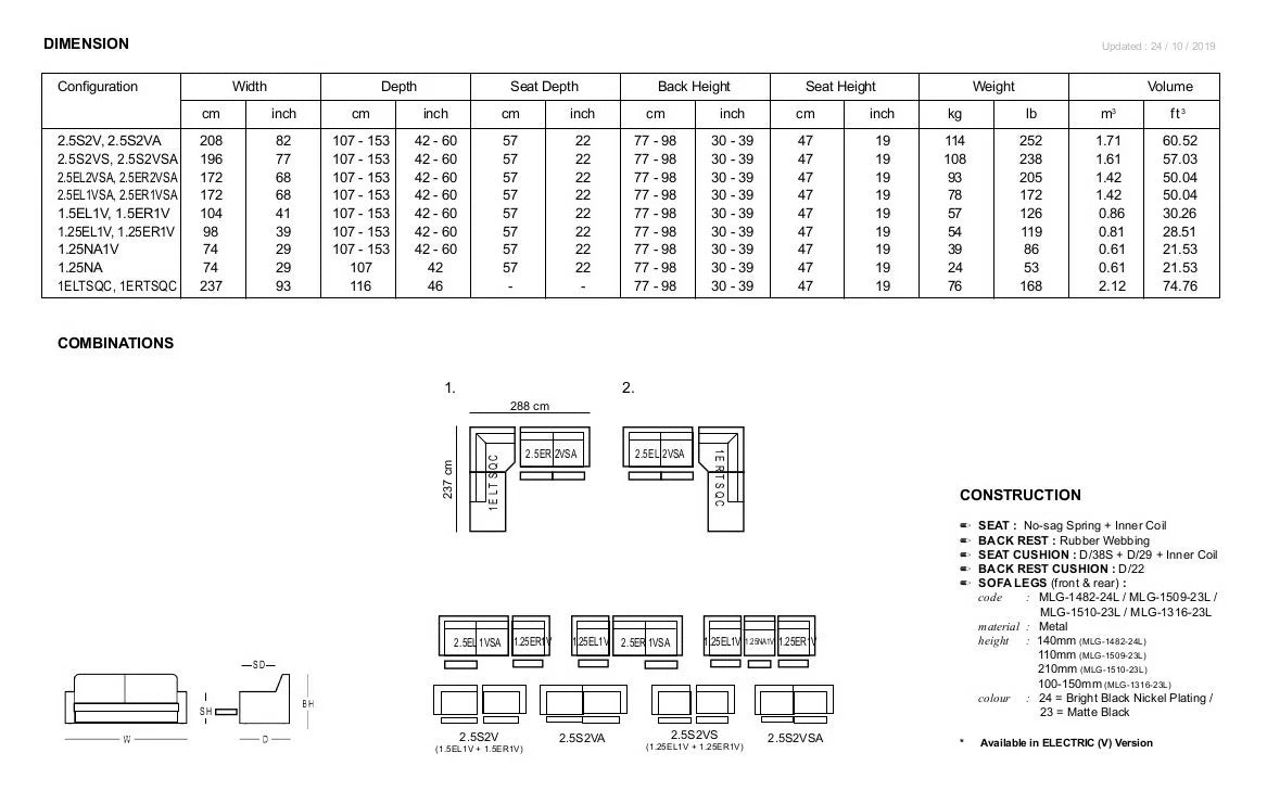 - Overall: W 113.40" x D 93.30" x H 30-39"