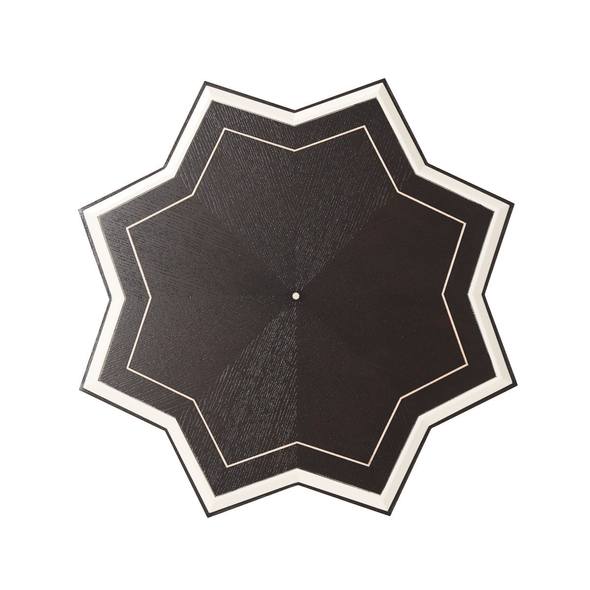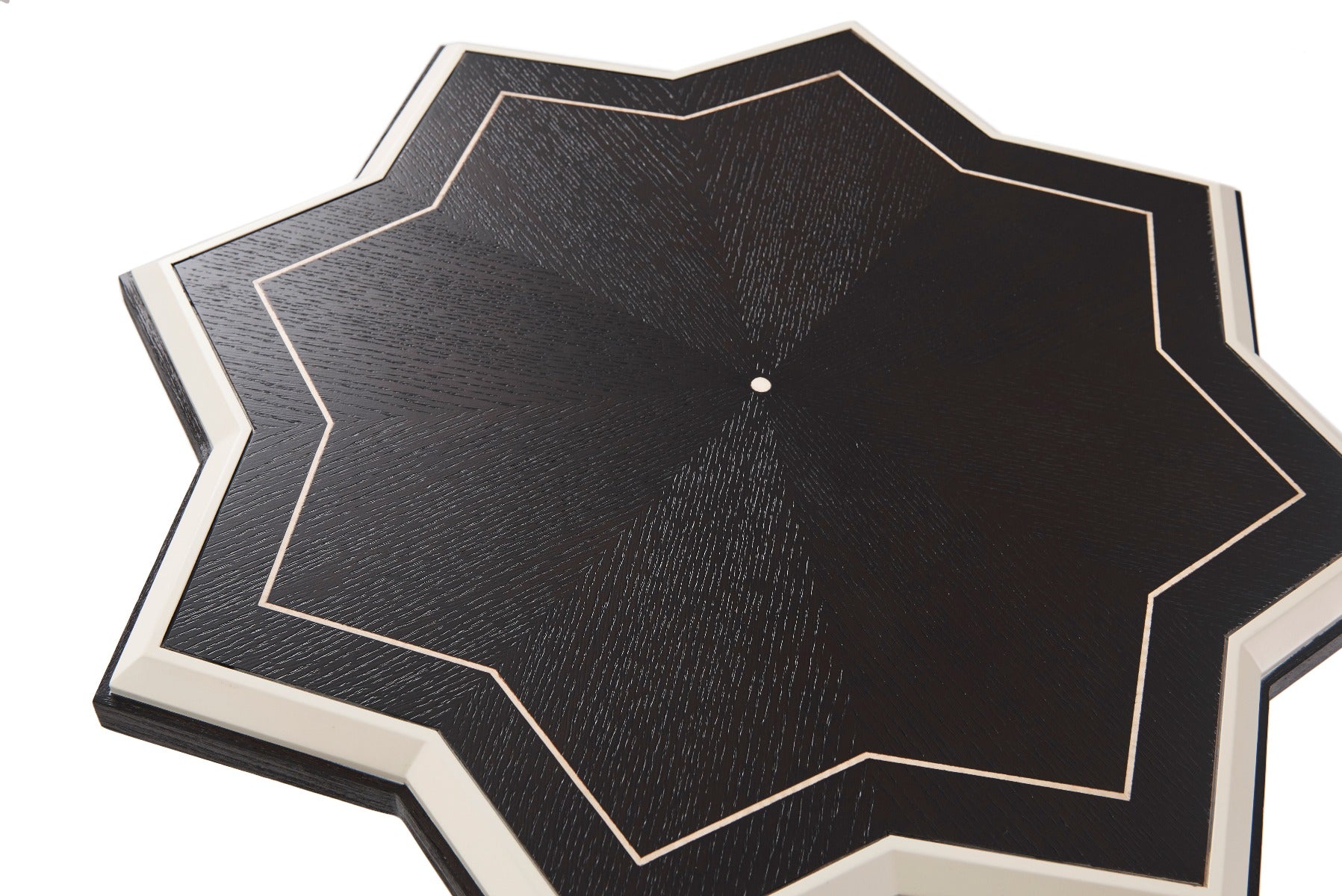 Accent Table Textured Ebonized Oak Veneered "Ivory" Lacquered Canted Edge and Line Detailed Tapering Octagonal Column Ivory Lacquered Edged Base