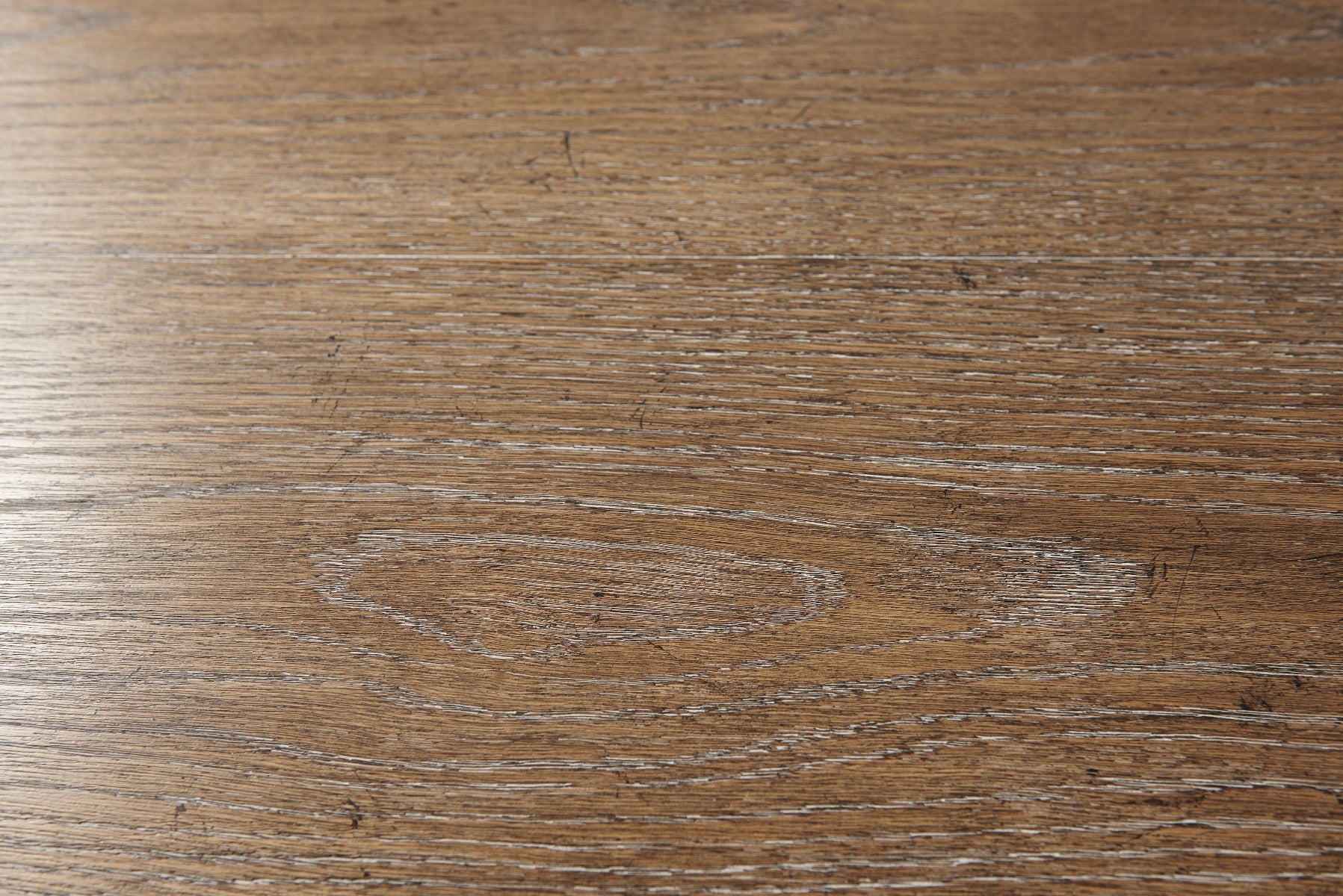 Oak Veneered Top with Cerused Caramel Finish Solid Base with Antique NoDa Cocoa Finish Turned Legs with Pedestal Bases Joined by Stretchers