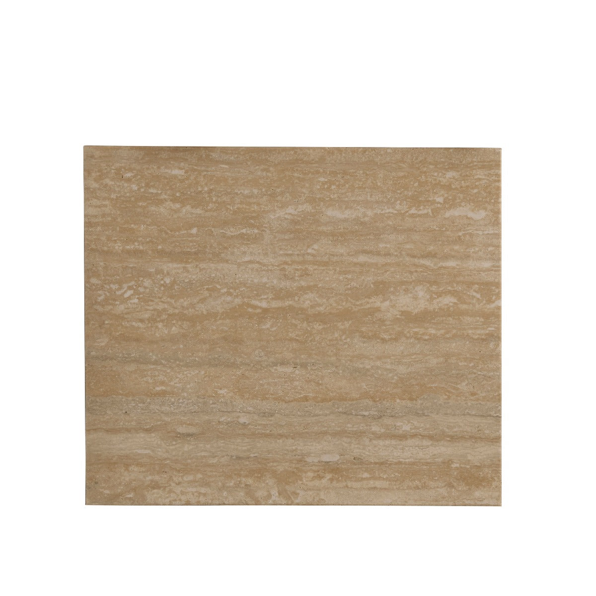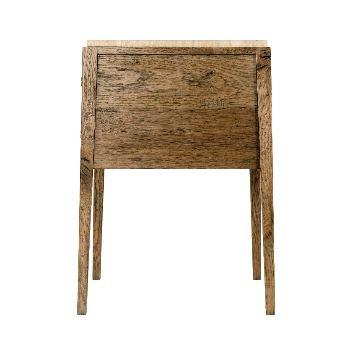 Honed Travertine Top Oak & Rustic Oak Chevron Parquetry 'Echo Oak' Finish Two Drawers Woven Textured 'Vintage' Metal Handles Square Tapering Splayed Legs