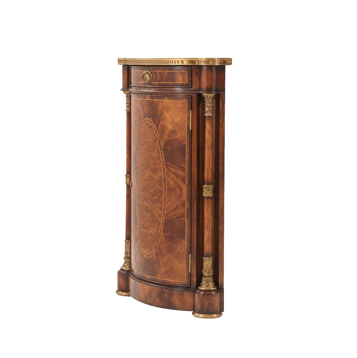 - Oval Pollard Oak Burl Panel Inlaid Side Cabinet
