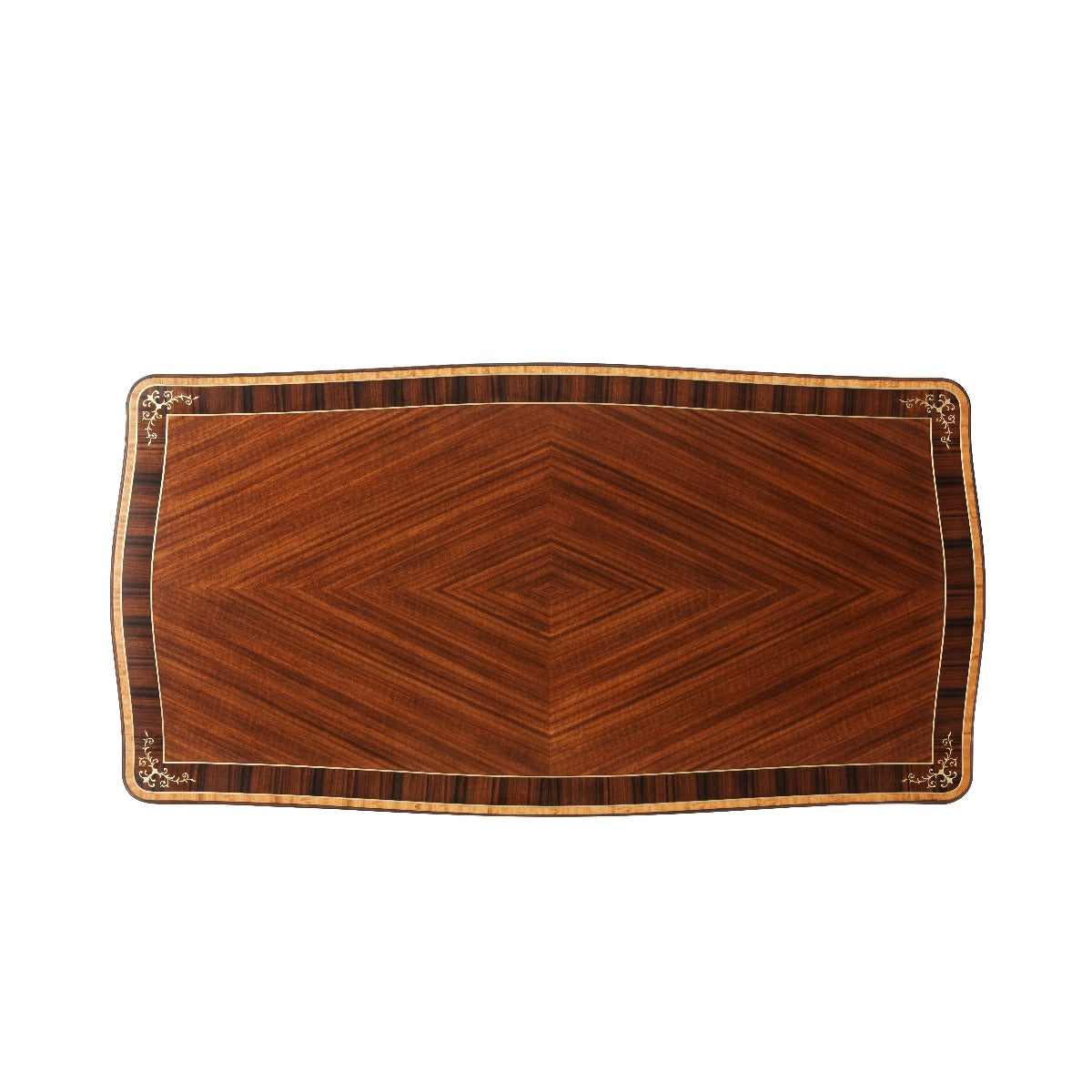 Two Frieze Drawers Turned & Fluted Legs with Acanthus Cast Brass Capitals and Feet Solid Mahogany & Figured Etimoe Veneer Primavera Veneer Crossbanding Floral & Brass Line Inlaid Walcot Finish with Old English Brass Accents