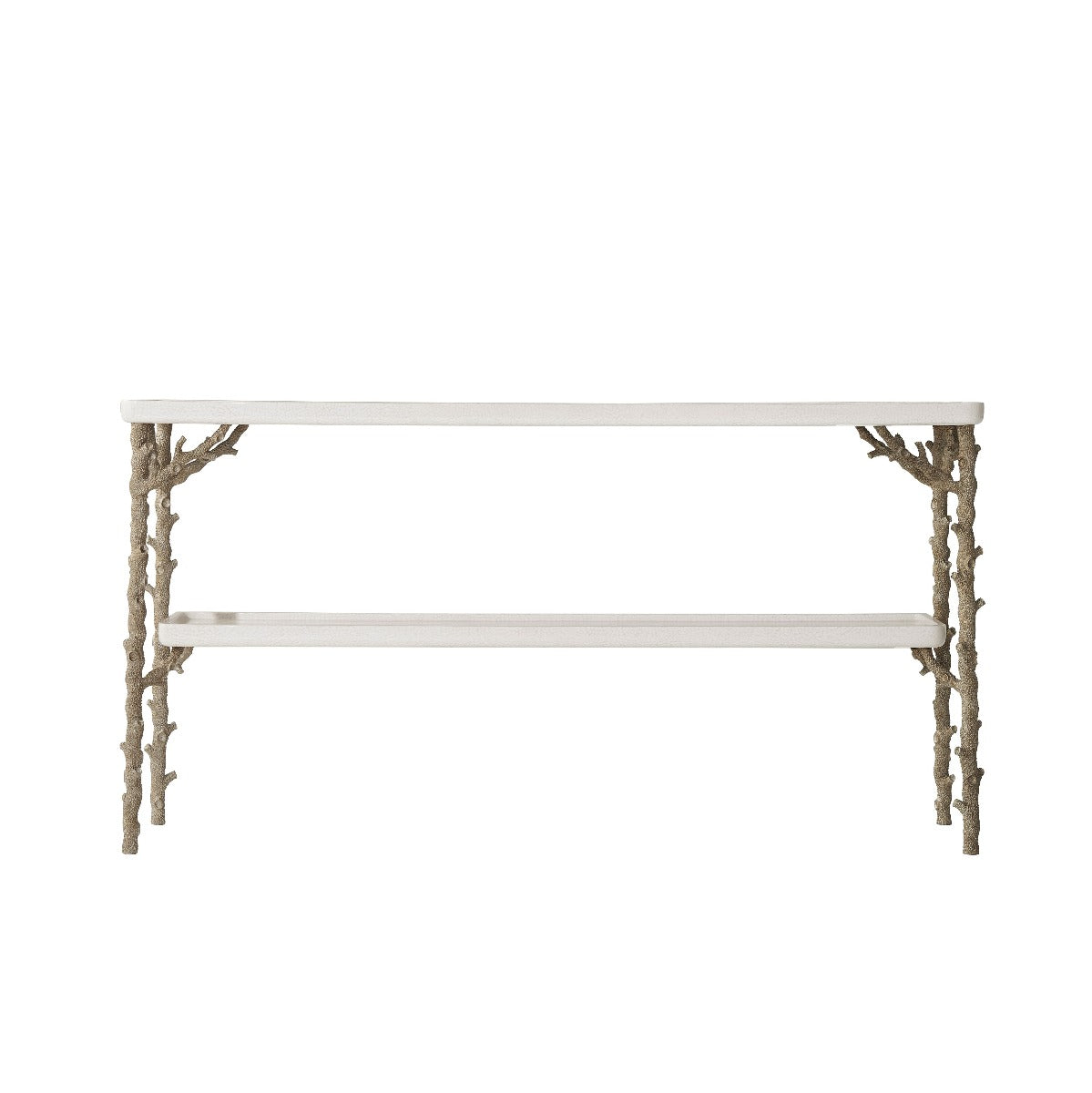 Mottled White Eggshell Inlaid Tray Top and Undertier New Champagne Finish Textured Coral Cast Aluminium Legs