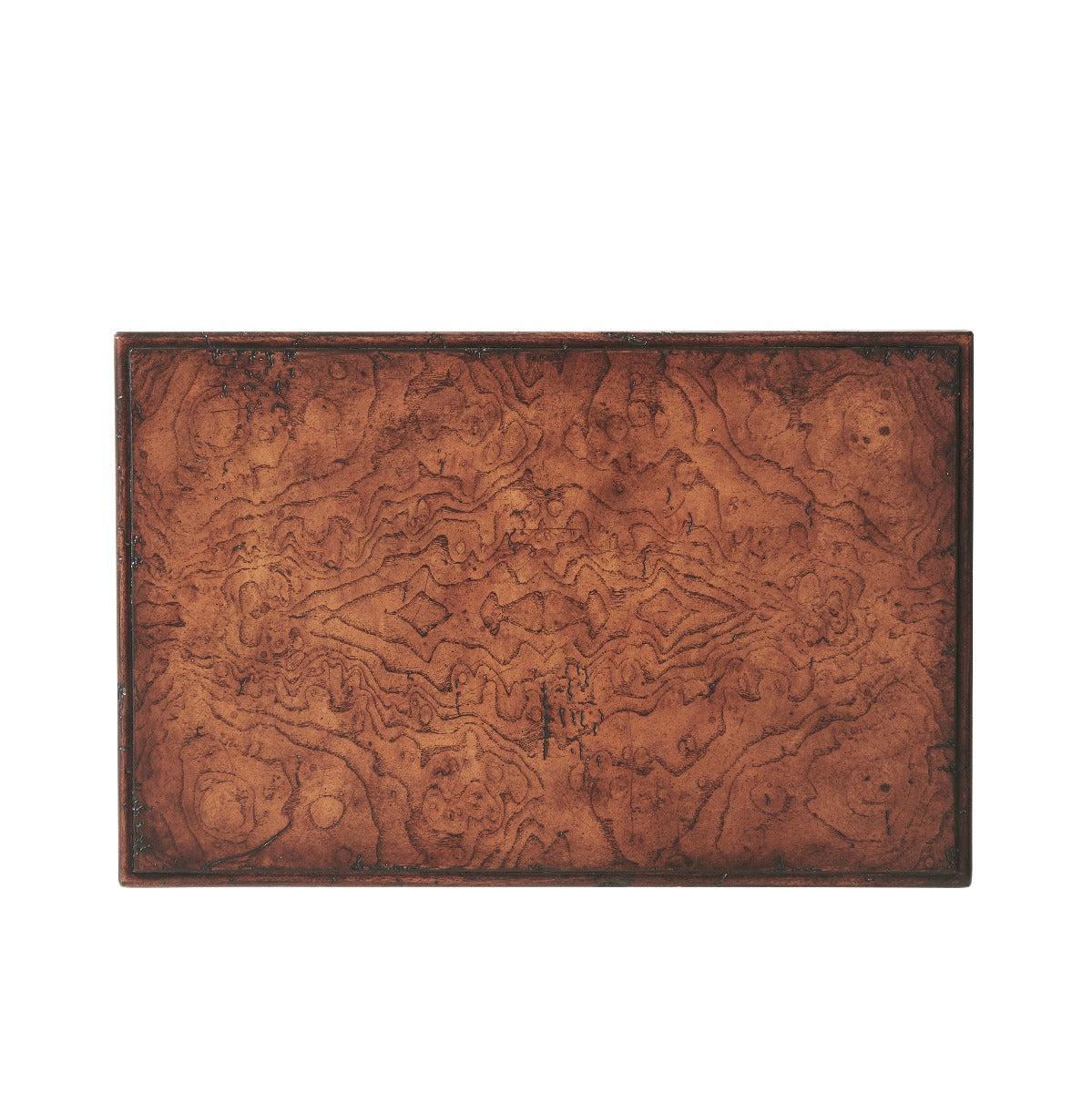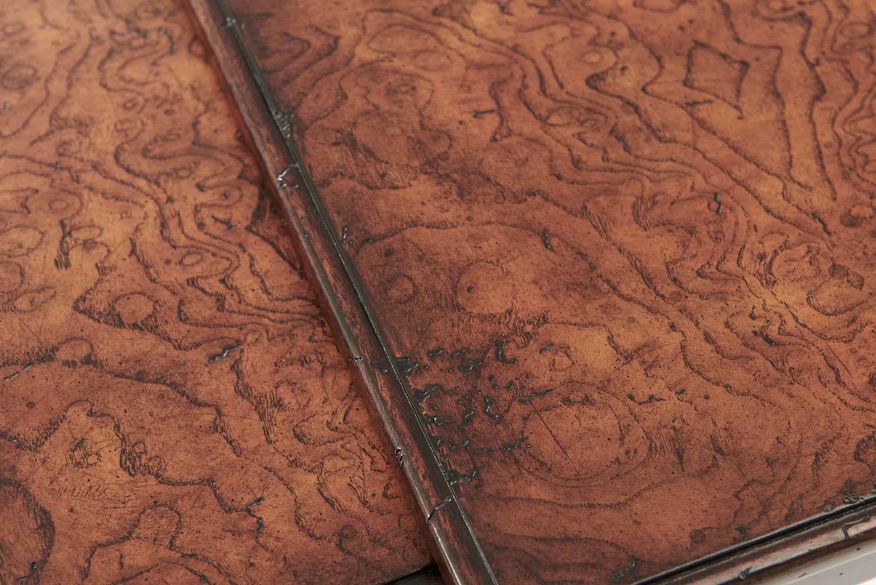 A nest of two ash burl tables, the moulded edge rectangular tops above delicate turned and fluted end supports on sleigh feet. The originals Regency.