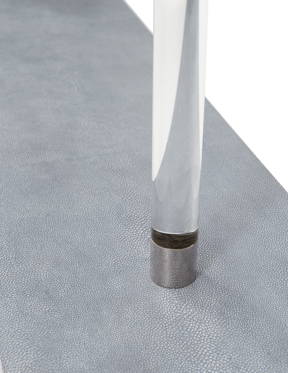 Shagreen Embossed Leather Wrapped Moon Blue Finish Optical Glass Column Stainless Steel Capital & Base