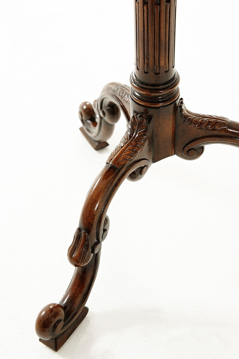 A mahogany and burl sunburst parquetry oval lamp table, with brass gallery and fluted column, on 'C' scroll legs. The original George III.
