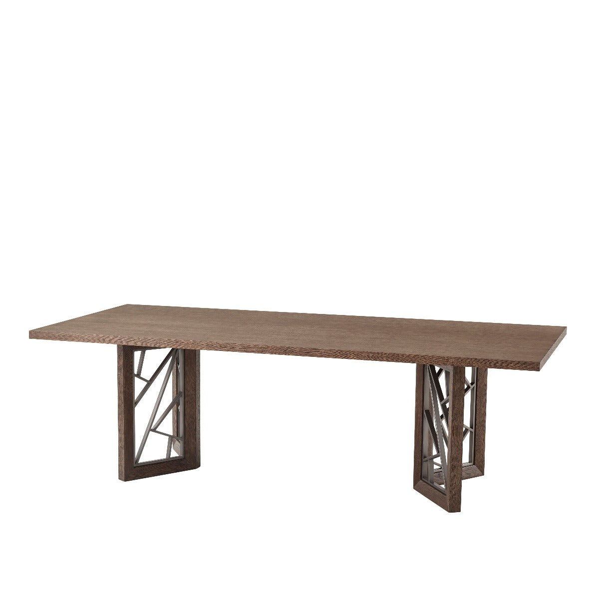 Dining Table Quartered Oak Veneered Rectangular Top Charteris Finish Oak Framed Twin 'Folded' Bases Enclosing Matte Tungsten Finish Modern Trellises