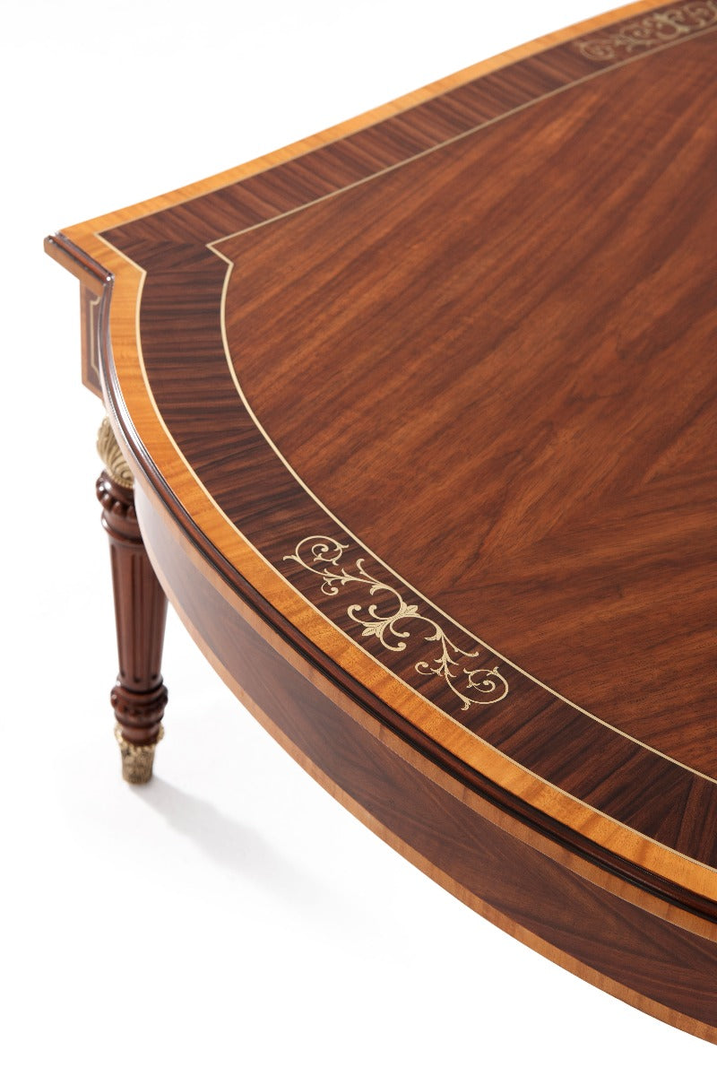 Brass Floral & Line Inlaid Figured Etimoe Veneer Primavera Veneer Banding Walcot Finish Old English Brass Accents