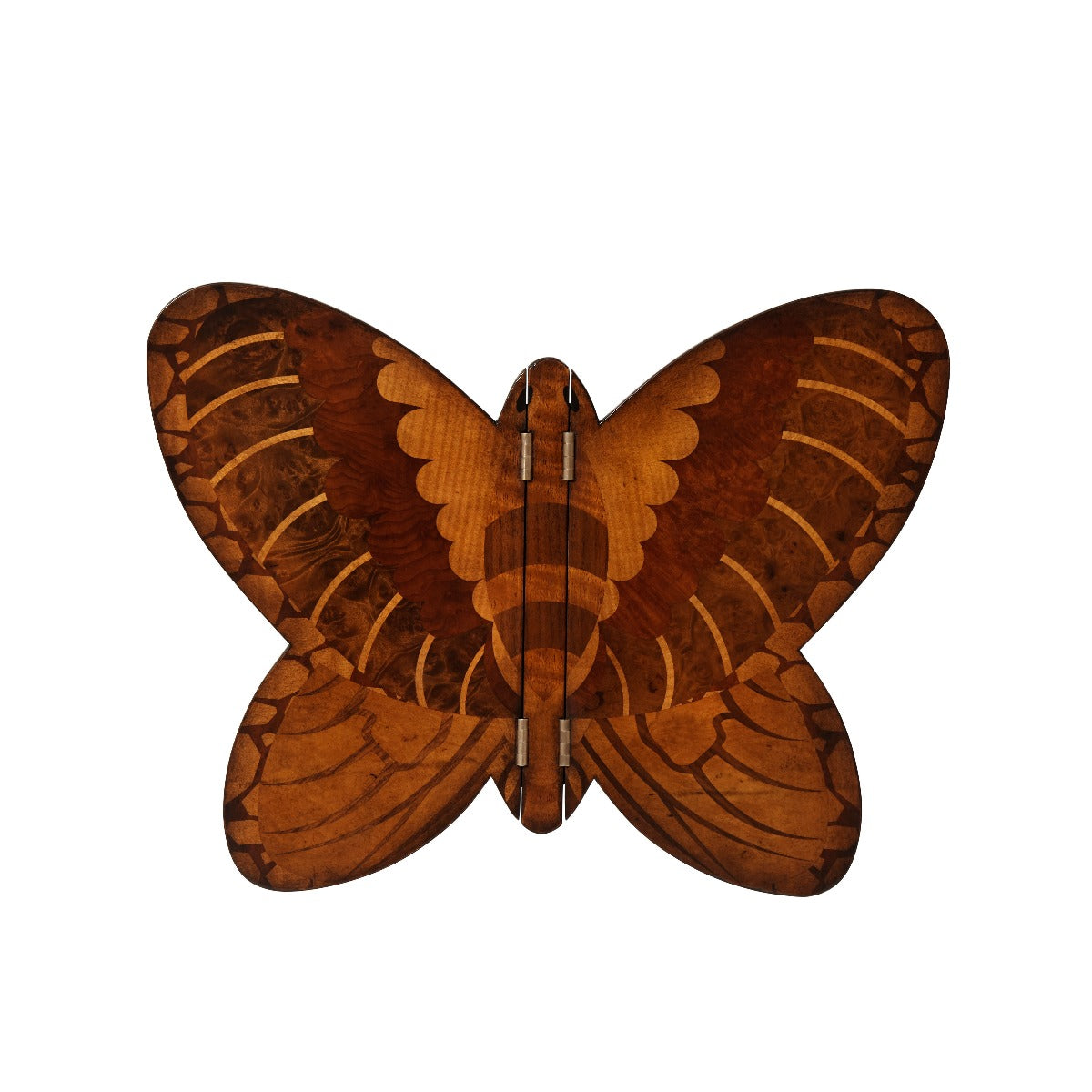 A marquetry inlaid butterfly work table, the top inlaid with morado, burl and amboyna and with two hinged 'wing' panels opening to reveal the painted Spencer crest, on a ring and baluster turned column and delicate down swept tapering legs and peg feet.