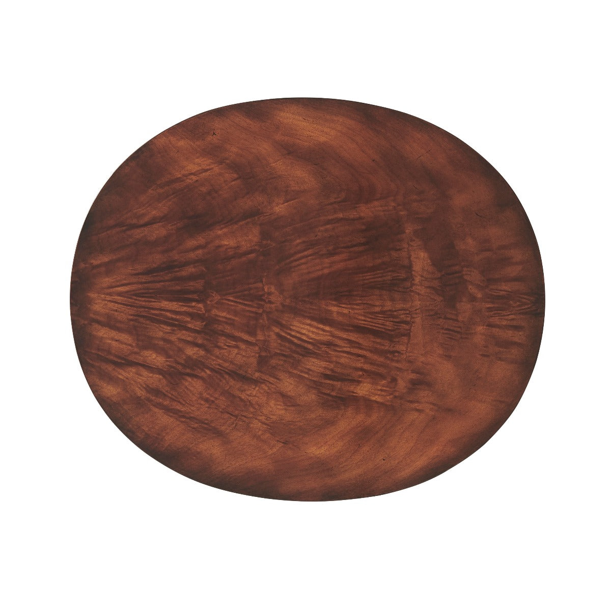 A flame veneered and mahogany lamp table, the oval top on gently splayed acanthus capital and reeded tapering legs joined by an undertier.