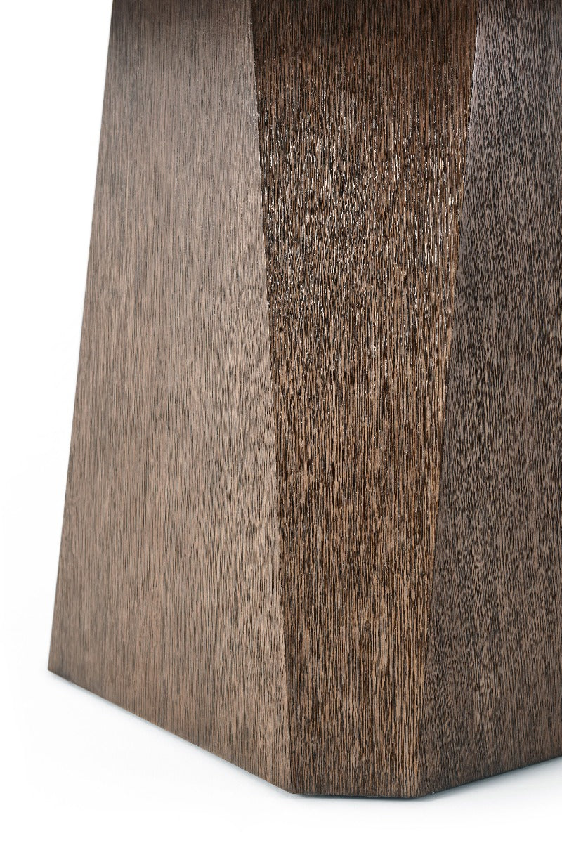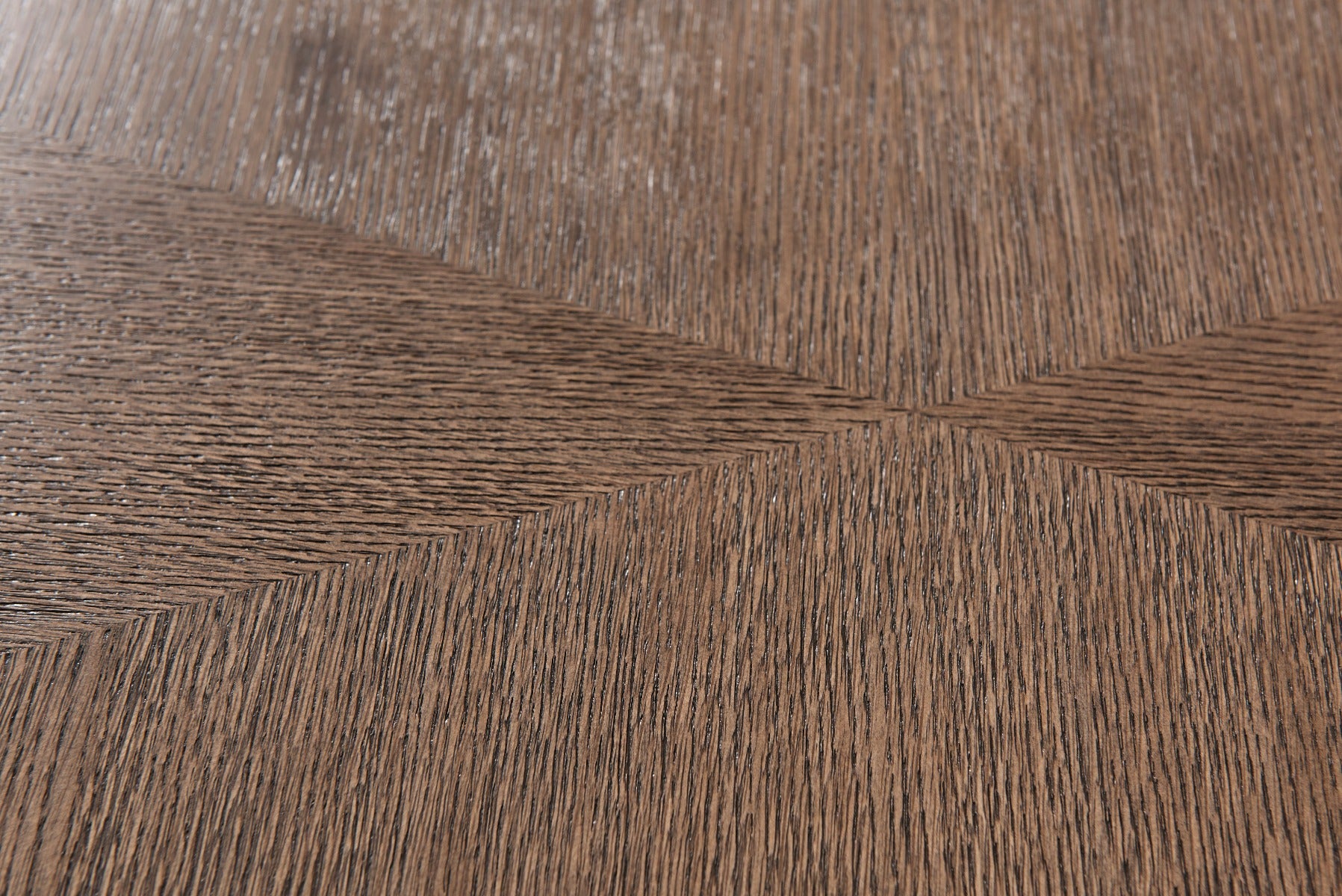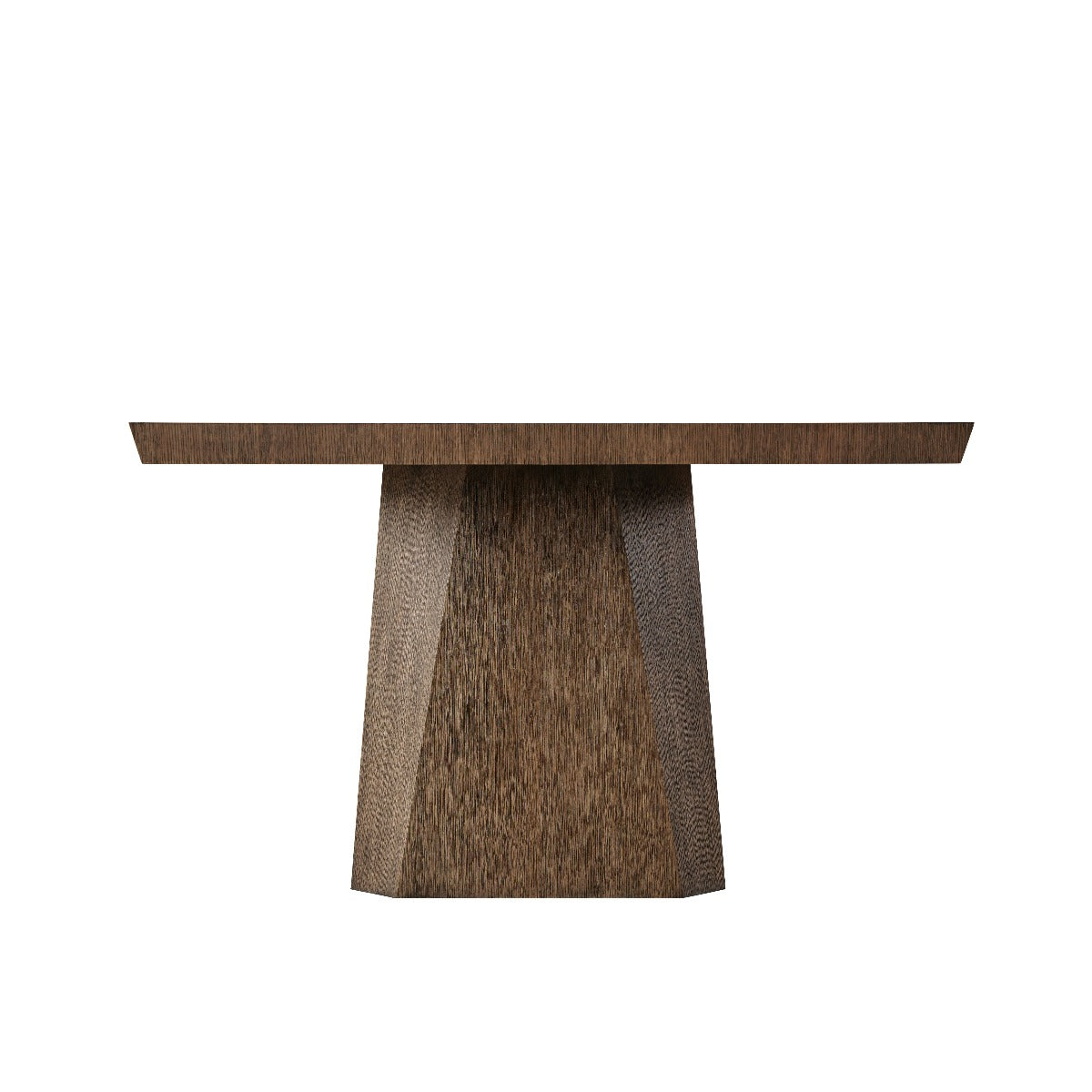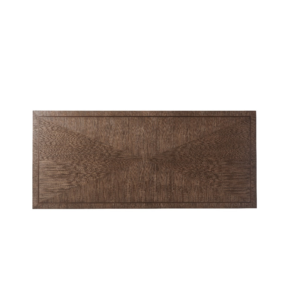Dining Table Brushed Quartered Oak Veneered with Walnut Banding Charteris Finish Canted Edge Rectangular Top Twin Tapered Geometric Bases Bold Stretcher